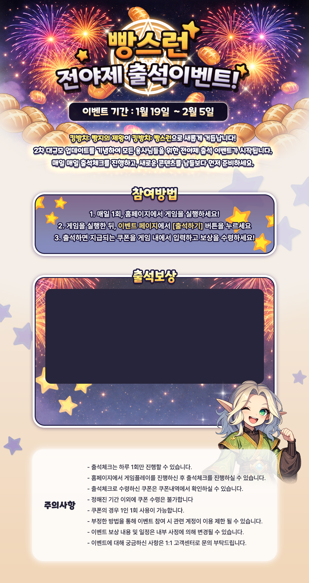빵스런 전야제 출석이벤트!